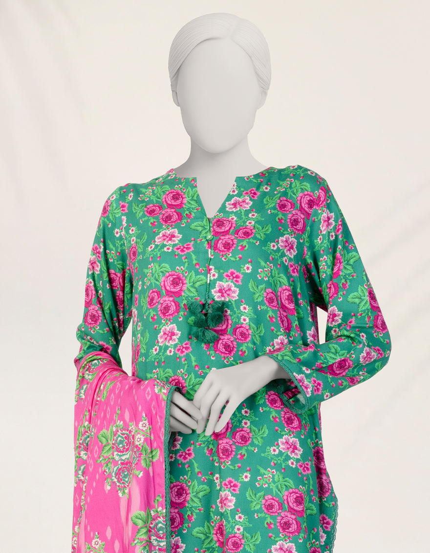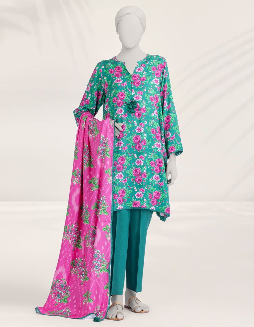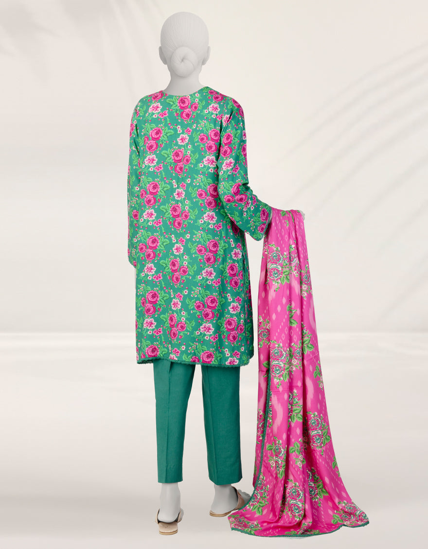 GREEN VISCOSE 3PC UNSTITCHED | JLAWN-S-25-967 REVERSE CHARM-3