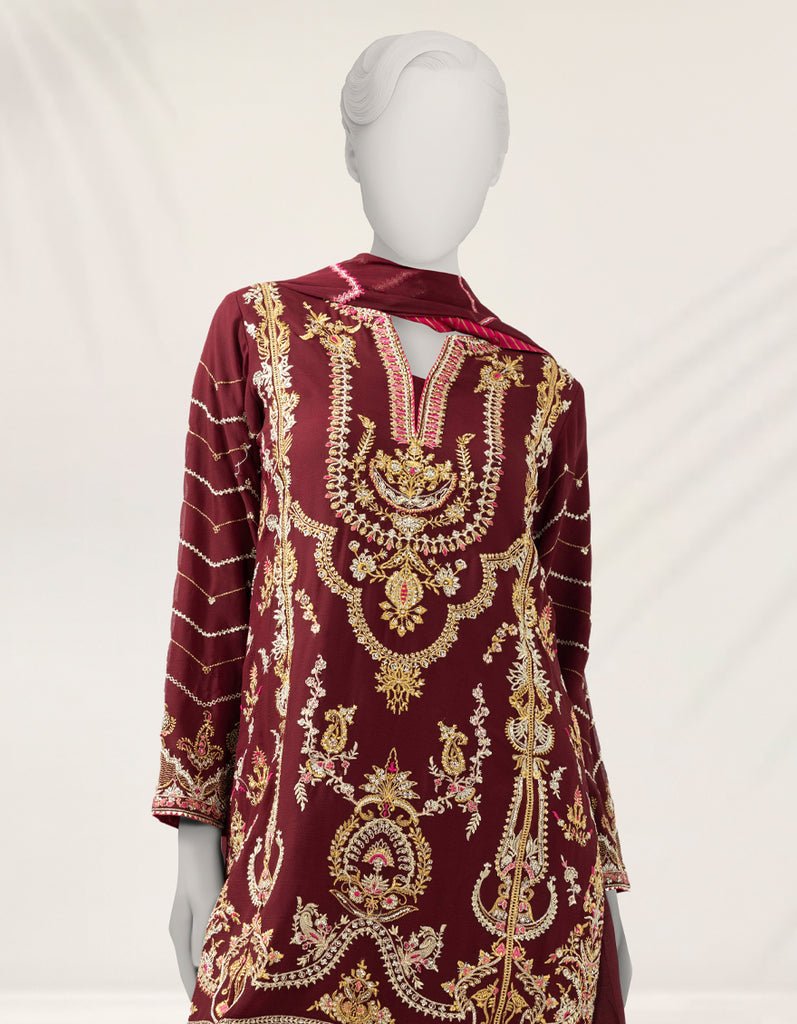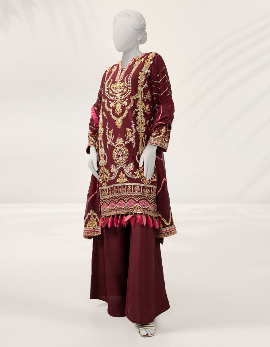 MAROON CHIFFON 3PC UNSTITCHED|JJLS-S-JFU-25-715 FALAK-1