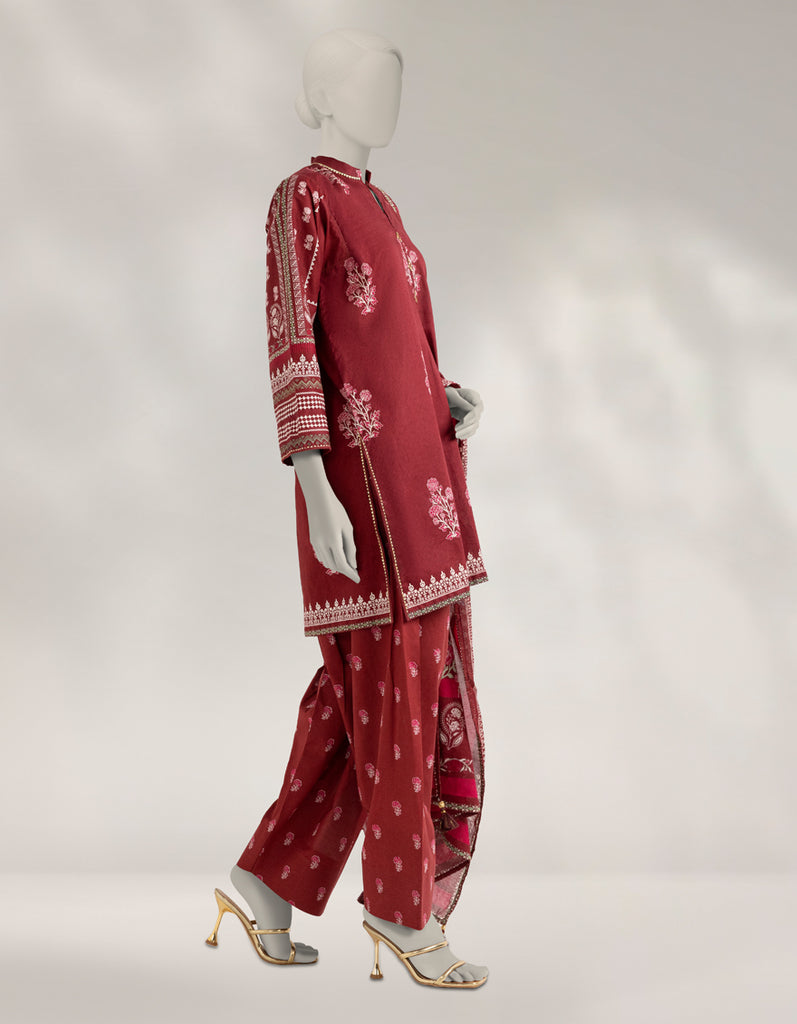 MAROON CAMBRIC 3PC STITCHED | JLAWN-W-25-1049/S MUGHAL-05