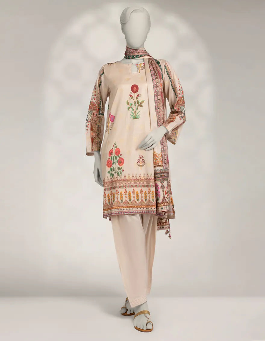 BEIGE JACQUARD 3PC STITCHED | JLAWN-W-25-310/S MUGHAL BAGH-02
