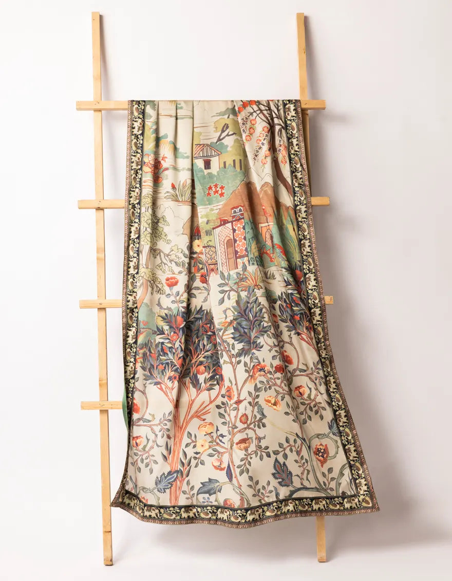 GREEN IMPURE SILK SHAWL | JSH-JSHW-25-4909 FB/SHIKAARGAH-01