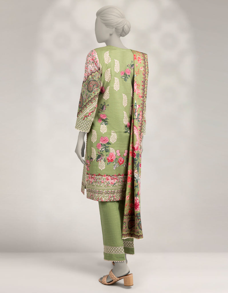 GREEN KHADDAR SLUB 3PC STITCHED | JLAWN-W-25-294/S GEOMETRIC PAISLAY-02